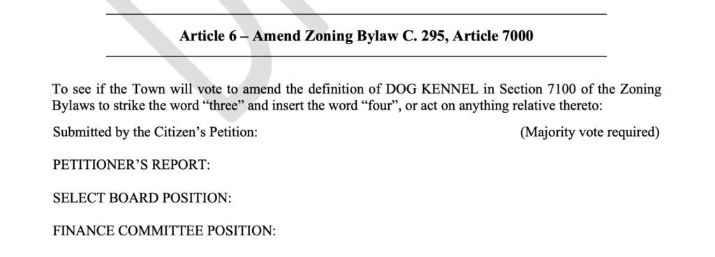 Draft Special Town Meeting Warrant Features 4 Citizen’s Petitions