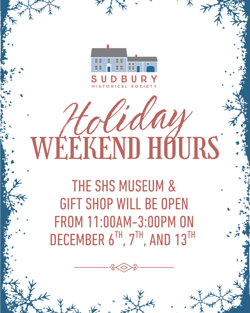 Stop by the Sudbury History Center and Museum on Saturday, December 6th, Sunday, December 7th, and Saturday, December 13th between 11:00am to 3:00pm to learn about town history, buy local from the 01776 Gift Shop, enjoy free kids activities, and donate common household goods to Gifts of Hope Unlimited! Holiday merchandise such as Sudbury ornaments will be available. Bring a donation for Gifts for Hope and receive 10% off your gift shop purchase! Everything from bags, cleaning supplies, detergent, foil, kitchen items, paper products, soap, sponges, utensils, and wipes will be accepted and appreciated.