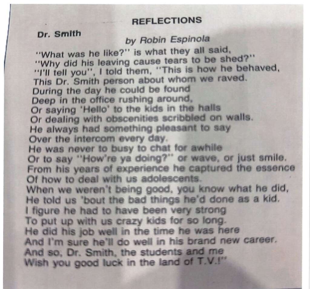 Smith’s children were present to provide comment, including a reading of a poem written by one of Smith’s students at Curtis Middle School when he was moving on to the next chapter in his illustrious career.