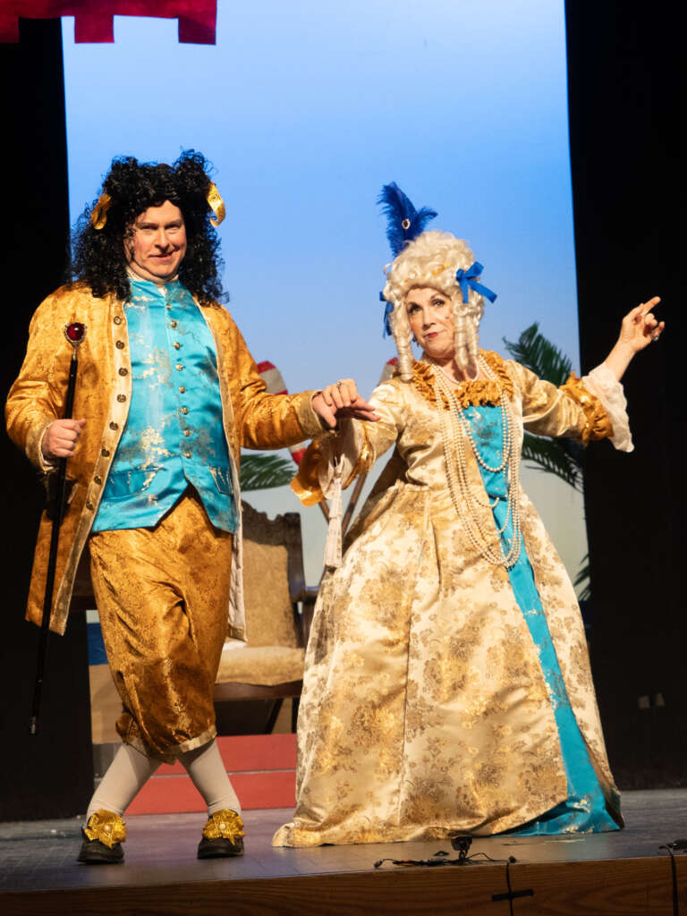 Set in 1750s Venice (hence the show’s title) and on the fictitious island of Barataria, the plot is like many a convoluted Shakespeare play. To wit, two heartthrob brothers and gondoliers, Marco (played by the engaging Bruce Amidon) and Giusseppe (Santo Mammone, who hammed it up as Scynthius in 2024’s Princess Ida) are preparing to choose brides from among the city’s contadinas (peasant girls). Giannetta (enthralling soprano Danielle Shevchenko) and Tessa (rewardingly rich mezzo-soprano Gretchen Struckmeyer) are chosen and married. This all happens in a huge and long opening number (“List and learn”) with multiple melodies and verses.