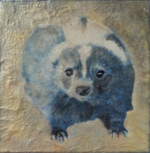 “In my workshop we waxed cyanotypes to wooden panels and then built up layers of colored wax. The attached skunk image is more straightforward with wax to seal it to the board and some gold powder around the edges. The dandelion has some areas with colored wax. I loved the process. Thank you FELS!”